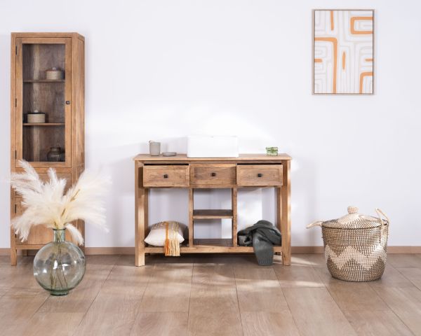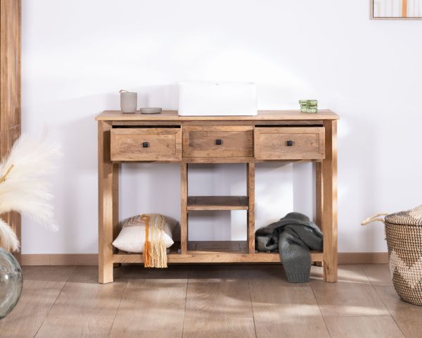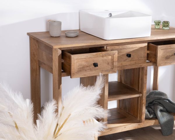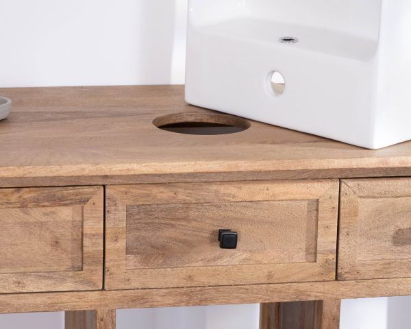 Materiali: Mango massiccio, lavabo in ceramica, metallo e MDF