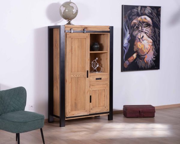 Con dimensioni di 104 x 160 x 43 cm (L x A x P), questo mobile contenitore è dotato di diversi moduli per organizzare le vostre cose, come stoviglie e bicchieri. Troverete anche molto spazio per le vostre pratiche amministrative, i giochi da tavolo e persino gli aperitivi in questo mobile ispirato alla fabbrica.