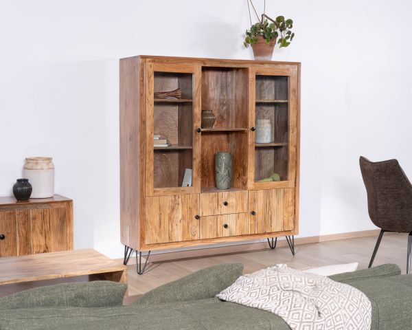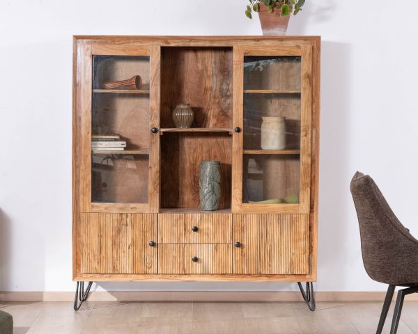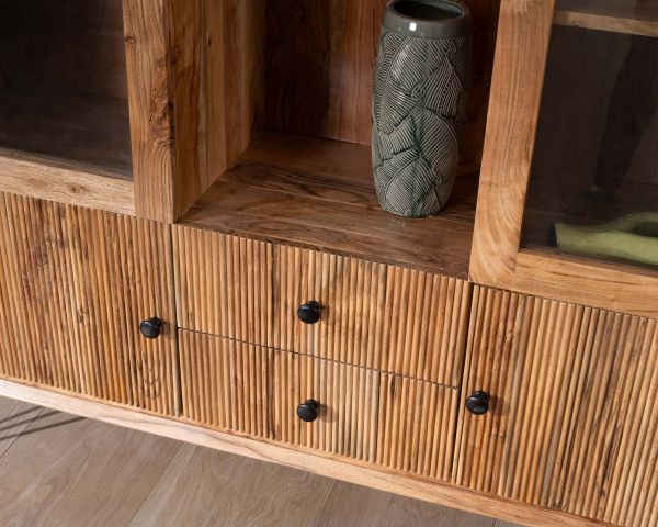 Materiali: Acacia massiccia, metallo nero e compensato