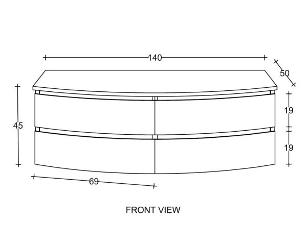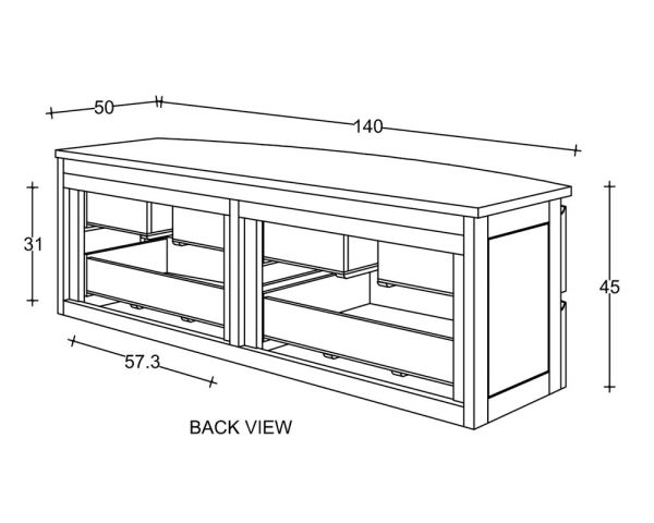 Lunghezza: 140 cm; Profondità: 50 cm; Altezza: 45 cm