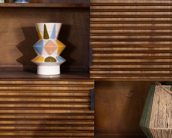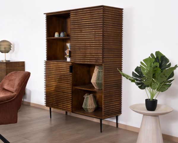 Materiali: Mango massiccio, teak di recupero, compensato e metallo