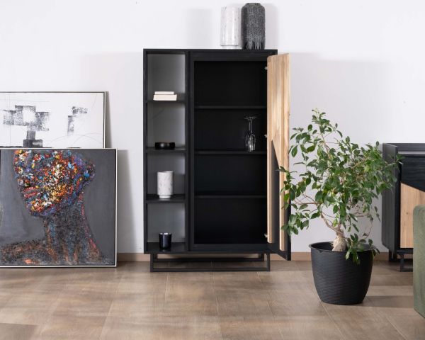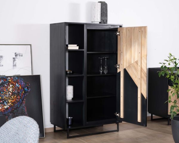 Struttura, ripiani e anta in pino massiccio, parti nere
