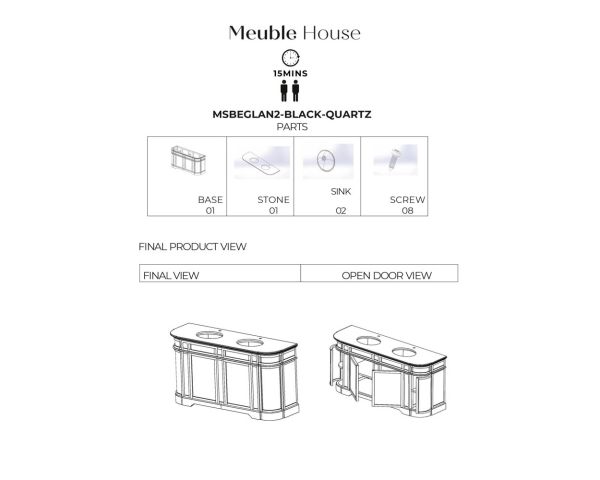 Materiali: Mango massiccio, granito, ceramica, metallo, base del mobile in MDF