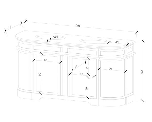 Lunghezza: 183 cm, Profondità: 56 cm, Altezza: 90 cm