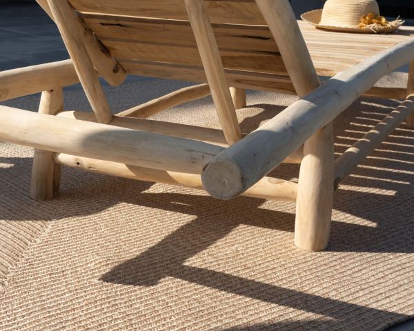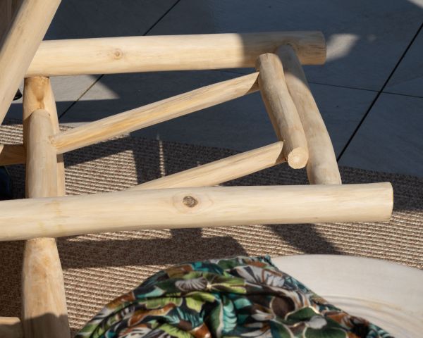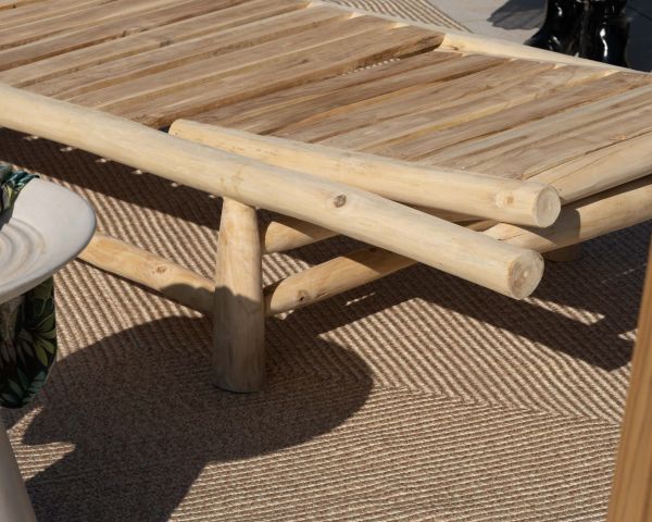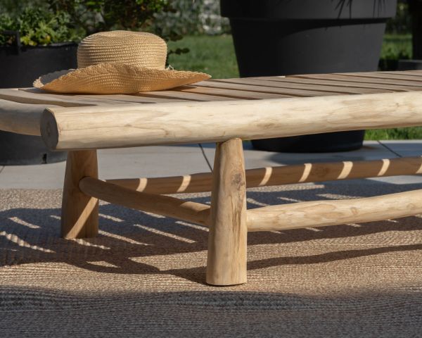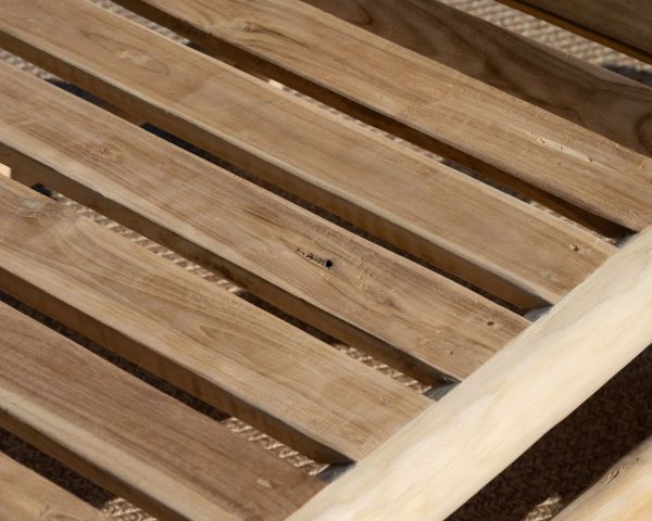 Lettino prendisole in teak sbiancato con finitura ruvida e texture al tatto