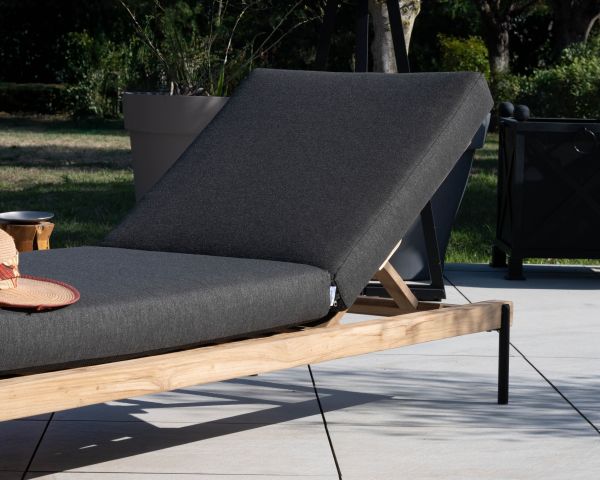 Materiali: Tessuto, schiuma, teak riciclato e alluminio