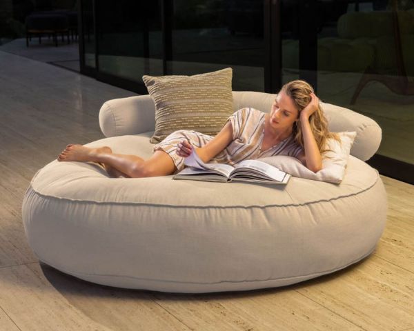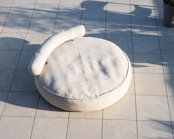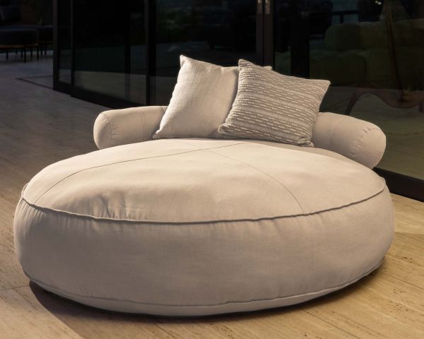 Con un diametro di 1m80, questo mobile da esterno si presenta come un voluminoso cuscino sul quale sognerete di rilassarvi da soli o in coppia sulla sua superficie accogliente e generosa.