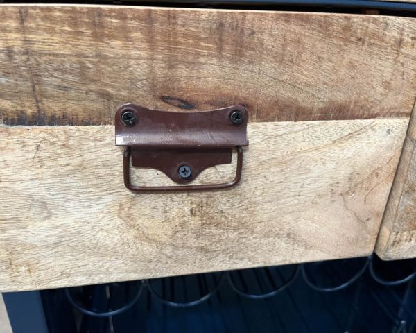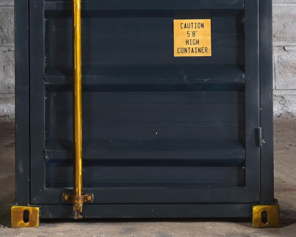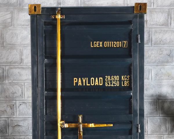 Ci piace la sua finitura giallo/oro e il colore blu intenso, che aggiungono un tocco maschile e chic al bar. Ogni mobile è davvero unico, con una scritta a bastone e una grande maniglia vintage. Realizzato in gran parte con materiali riciclati, questo bar in metallo è ricco di carattere, grazie ai segni e alle ammaccature lasciati volutamente più o meno visibili dai suoi progettisti.