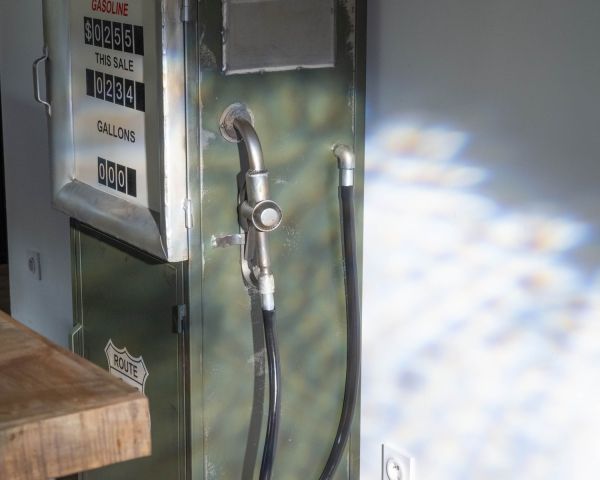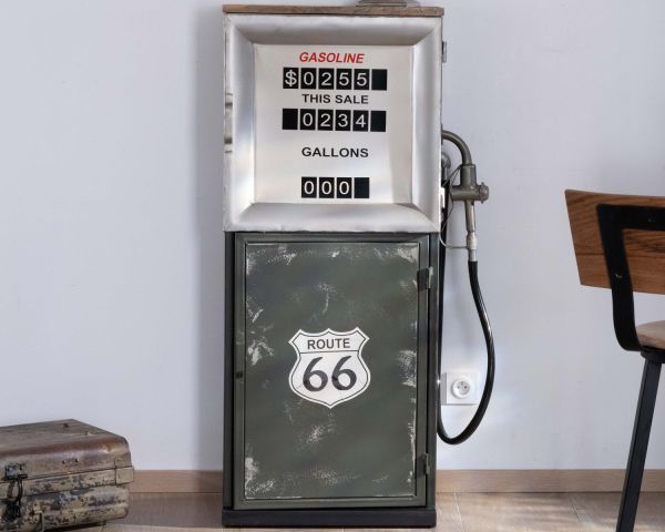 Oggetto decorativo autentico , originale e pratico, il mobile bar con pompa di benzina sarà il punto di partenza per momenti di convivialità in cui gli aneddoti di viaggio di ognuno riempiranno il vostro salotto di un'atmosfera calda ed esotica.