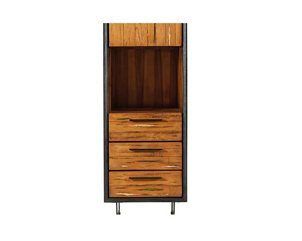 Questa colonna della collezione "Ilowa" è realizzata in waru, una varietà di teak, un legno esotico e pregiato. Tinta di nero, mette in risalto il legno di barca riciclato che costituisce il resto dello scaffale. Ogni pezzo è unico, grazie al materiale con cui è realizzato. I dettagli in diversi colori (principalmente verde, blu e bianco sporco) aggiungeranno autenticità e anima a questa libreria. Per uno stile decisamente contemporaneo, le gambe sono in metallo. Insomma, un connubio perfetto tra design semplice e legno ricco e dai colori caldi.