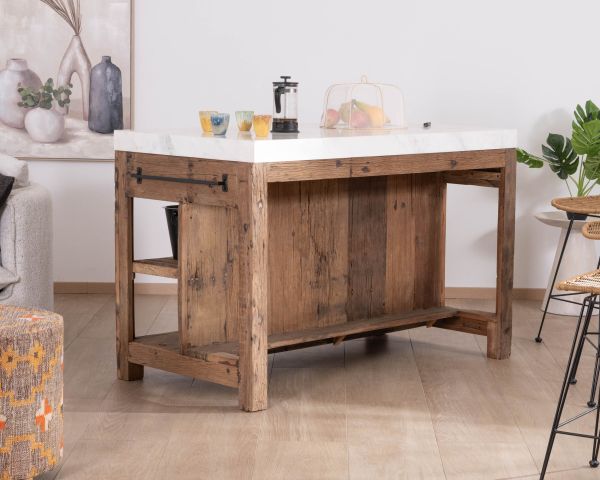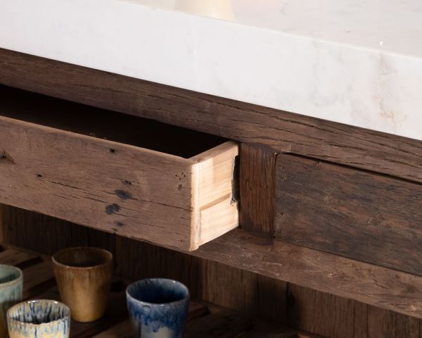 Le bois recyclé présente des marques de son passé, chaque meuble a donc des traces, des creux ou des fissures qui lui sont propres.