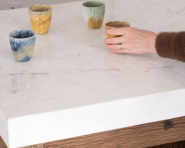 Nous vous recommandons de proscrire l'usage de produits détergents et de matières agressives ou acides comme le citron, la javel, le vinaigre d'alcool... en particulier pour le marbre qui risquerait de devenir poreux. Préférer l'usage d'eau tiède éventuellement complétée par du savon naturel comme le savon noir. Appliquer à l'aide d'une éponge douce type microfibre, rincer à l'eau claire et essuyer.