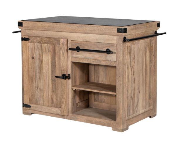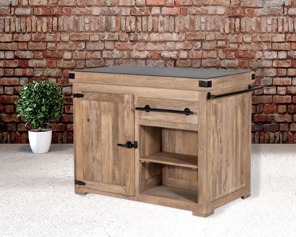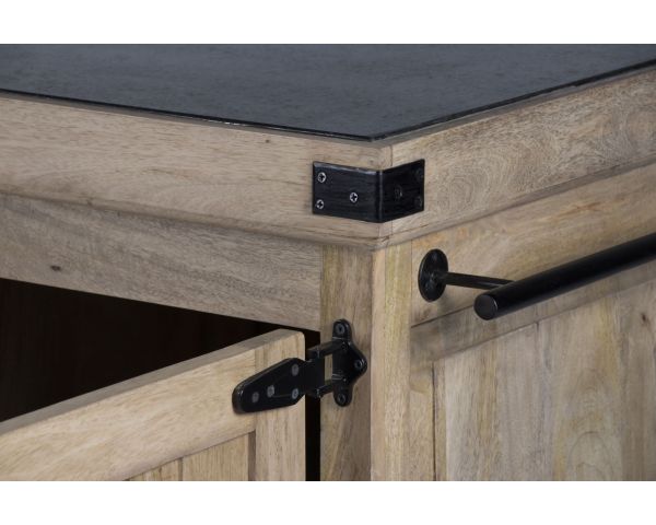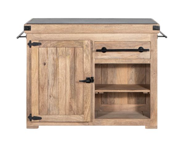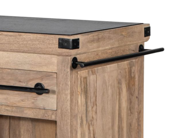 Questo magnifico blocco cucina "Grand Chef" in legno massiccio aggiungerà un tocco di gusto alla vostra cucina. Il corpo in legno massiccio, abbinato alla pietra del piano di lavoro in granito e alle cerniere, agli angolari e alle maniglie in metallo, gli conferiscono un aspetto semplice e autentico.