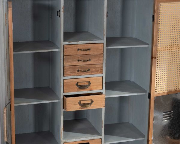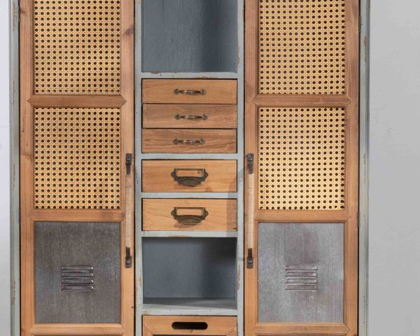 Materiali: Abete massiccio, zinco, MDF, schienale in compensato, rattan plastico
