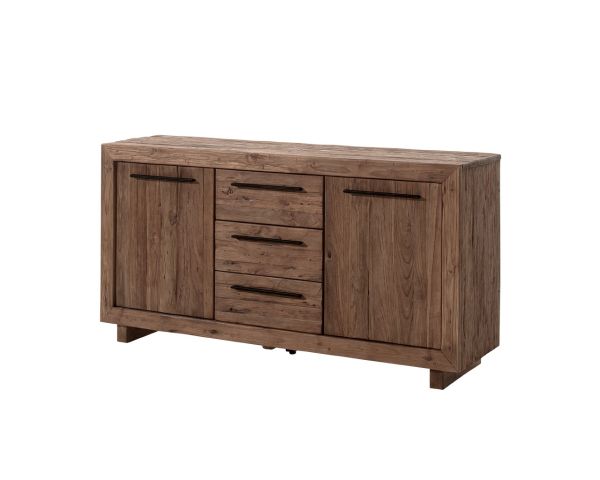 Dettagli tecnici : Teak massiccio di recupero (pezzi di legno come se fossero rattoppati, legno non liscio, tinte sfumate, ecc.)) Maniglie in metallo Ante con freno Schienale, fianchi, ripiani e fondi dei cassetti in CP teak I cassetti si aprono completamente su guide in metallo Unità consegnata assemblata 58 kg