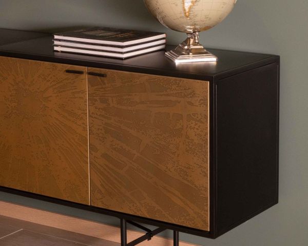 Credenza di design a 4 porte "Gilt Antique" in ottone dorato e ferro nero