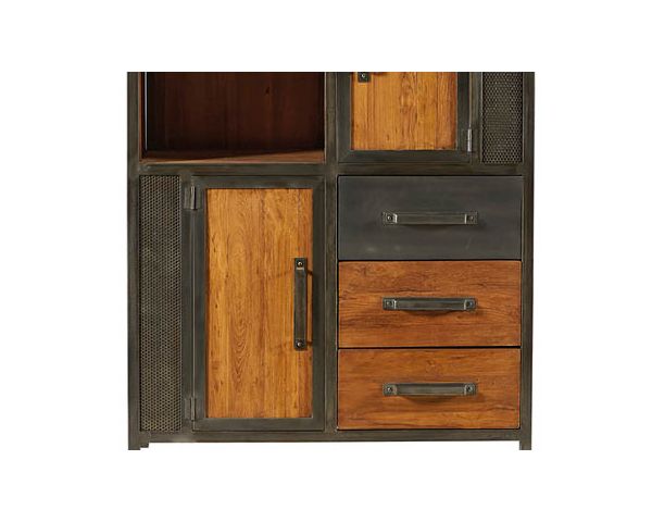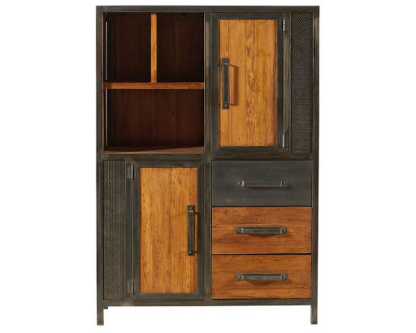 Perfetta per aggiungere un look factory al vostro arredamento, questa credenza farà la sua parte grazie ai suoi 2 armadi, 3 cassetti e 3 nicchie. Con una lunghezza di 100 cm, un'altezza di 144 cm e una profondità di 45 cm, il vostro nuovo mobile in legno e metallo fornirà al vostro salotto tutto lo spazio necessario per la vostra vita frenetica.