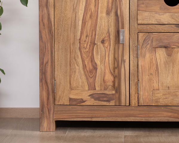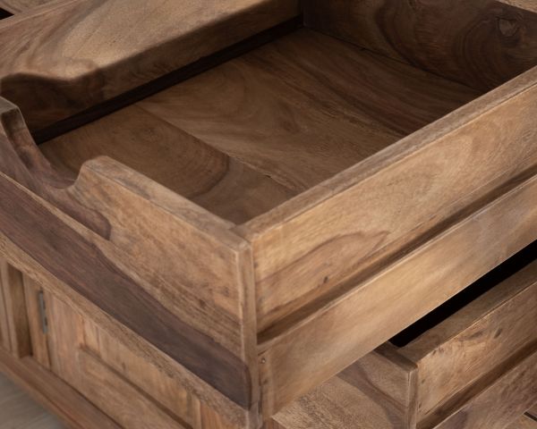 NB: Ogni mobile è unico. Il palissandro è disponibile in un'ampia varietà di tonalità nella gamma del marrone cioccolato, da molto chiaro a molto scuro. Le venature sono ben definite, con strisce scure che aggiungono profondità. Il gioco di colori e venature e i motivi del legno possono variare notevolmente da una tavola all'altra, rendendo ogni pezzo unico.