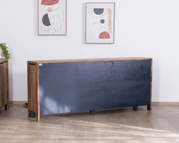Credenza multigriglia "Enoa" con ripiani in vetro in palissandro e acacia 200 cm