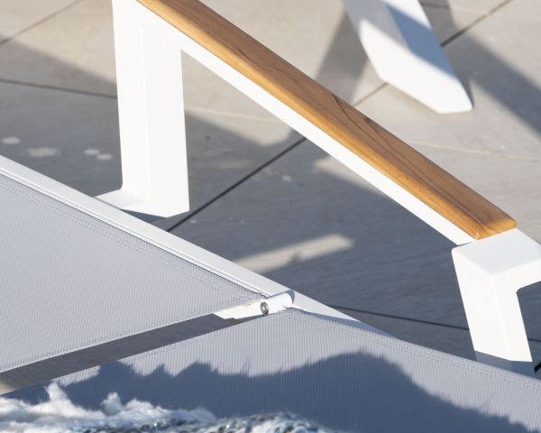 Alluminio, textilene e teak sono materiali resistenti all'uso esterno e non richiedono cure particolari. È sufficiente lavare con acqua e un po' di detersivo, se necessario, per rimuovere eventuali macchie. Durante l'inverno, si consiglia di riporre i mobili al chiuso o di coprirli.
