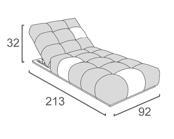 - Lunghezza totale (posizione sdraiata): 210 cm; Larghezza: 88 cm Spessore: 26 cm