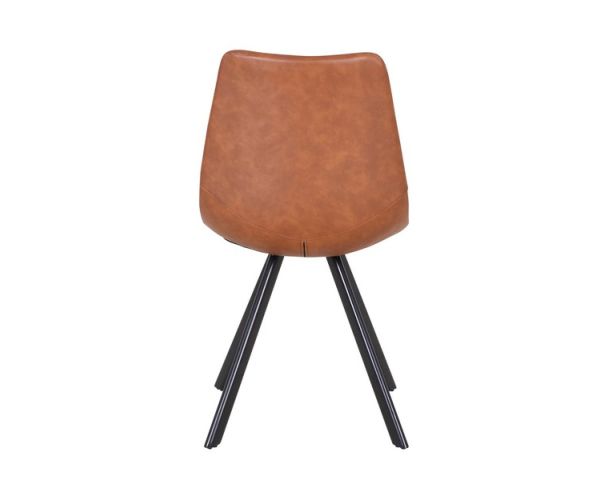 Sedia in stile nordico con gambe in metallo nero. Sono strombate per stabilizzare la seduta. Il sedile è realizzato in similpelle vintage in color cognac con finiture accurate.