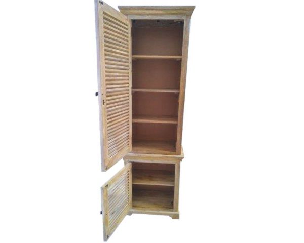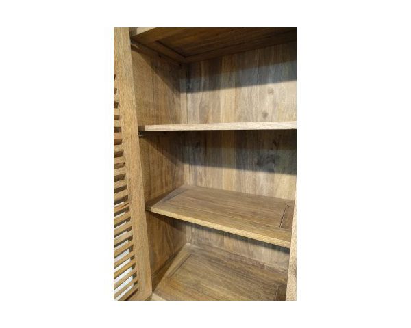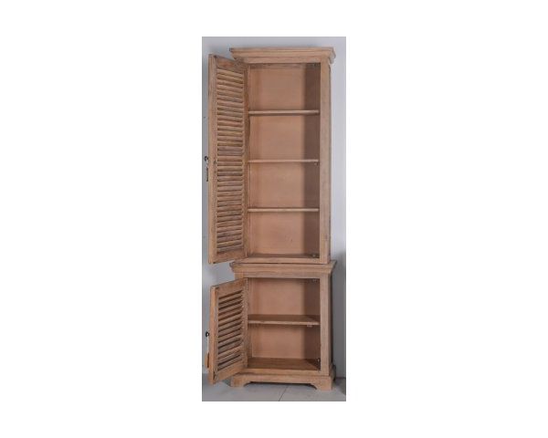 Questa colonna da bagno è dotata di due ampi vani portaoggetti. Ciascuno di essi è chiuso da un'elegante anta a persiana, che aggiunge fascino e morbidezza al vostro bagno. Con il suo colore legno chiaro, aggiungerà un tocco di natura ai vostri interni. Ogni spazio è altamente funzionale, con diversi ripiani anch'essi in legno massiccio. Ci sono tre ripiani nella parte superiore e uno in quella inferiore. Grazie a queste due sezioni indipendenti, potrete riporre separatamente tessuti, cosmetici e profumi...