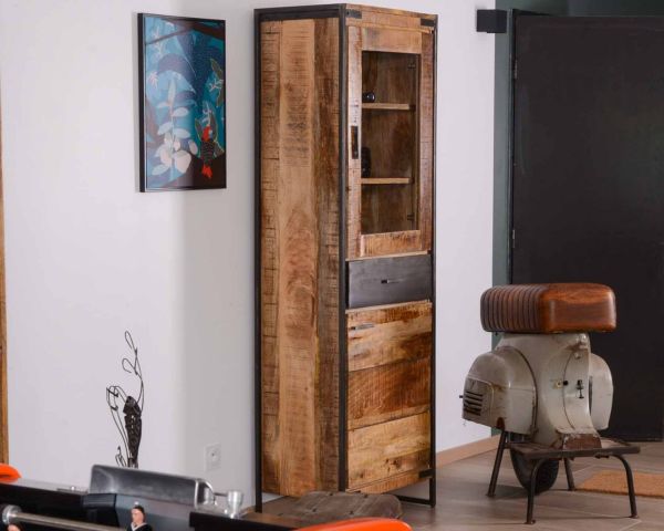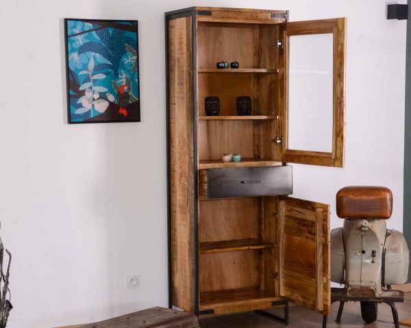 Con la sua sezione superiore vetrata contenente 2 ripiani, il cassetto e il vano inferiore chiuso, questo mobile in legno e metallo ha tutto. Si trova a suo agio sia in bagno come mobile contenitore, sia in soggiorno o in cucina come credenza alta o vetrina. C'è spazio anche per l'ufficio e non dimentichiamo il nuovo giardino d'inverno, che merita anch'esso di essere abbellito con un mobile ultra elegante!