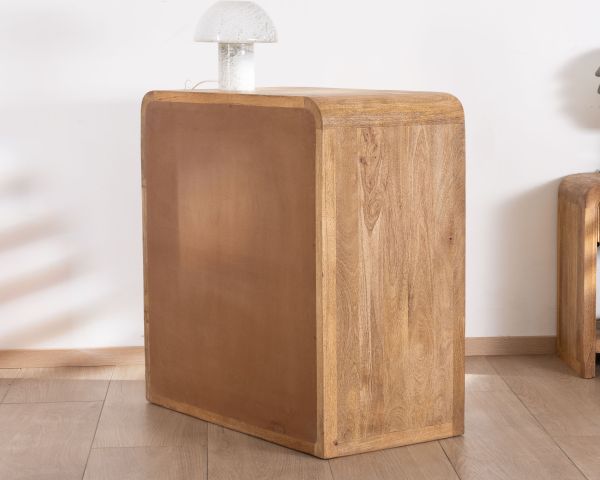 Legno di mango con finitura levigata e leggermente strutturata; tonalità naturale e leggermente ingrigita "antique"