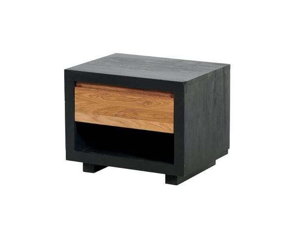Comodino "Flix" in pino massiccio e rovere, legno e nero, 1 cassetto