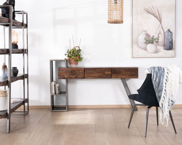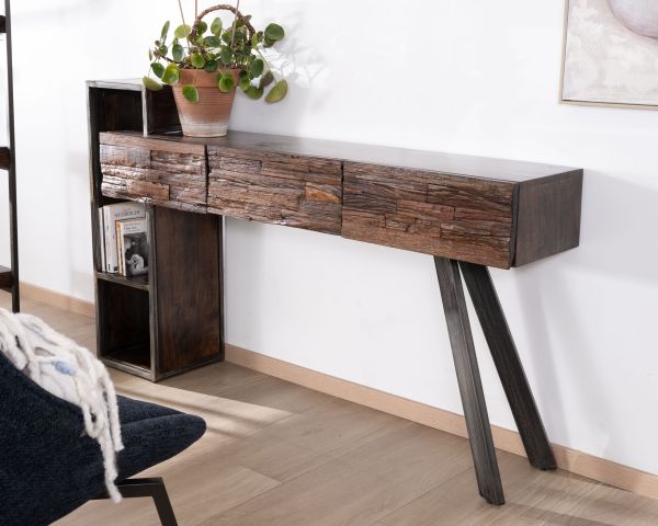 Materiali: Legno massiccio di acacia, legno di recupero, metallo e compensato