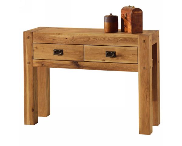 Ideale per dare un aspetto da "chalet di montagna" al vostro arredamento, questa consolle in rovere massiccio oliato svolgerà anche un ruolo pratico grazie ai due cassetti ad apertura totale e al piano rettangolare a doghe in rovere da 120 x 40 cm. Diventerà presto indispensabile nella vita di tutti i giorni, come luogo dove mettere il portafoglio, riporre le chiavi in una tasca, depositare la posta o esporre i souvenir più belli o le cornici delle foto... Tra due finestre, accanto al camino o anche in un ampio corridoio, questa consolle in legno massiccio si adatterà a tutte le vostre esigenze e ai vostri desideri.