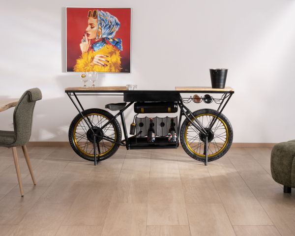 Fate in modo di decorare la vostra casa in modo originale. Questo mobile combina il legno di mango massiccio e le moto riciclate per creare una vera e propria dichiarazione.