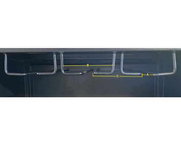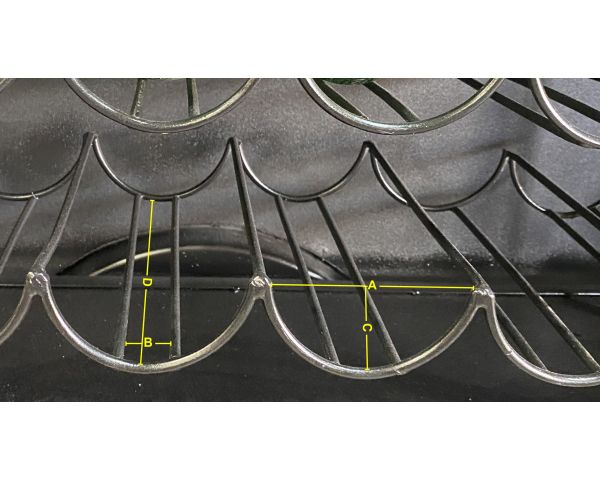 * D : portabottiglie centrale circa 32,5 cm / portabottiglie sotto il vassoio circa 22 cm