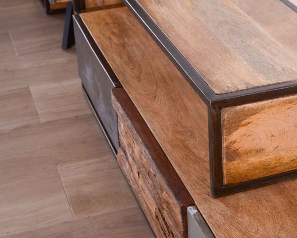 Materiali: Mango massiccio, legno riciclato, cemento, metallo trattato con agenti atmosferici, MDF