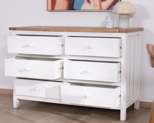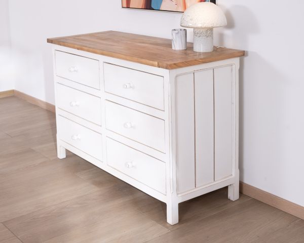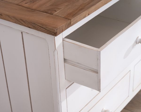 Corpo in legno, verniciato bianco, finitura effetto invecchiato