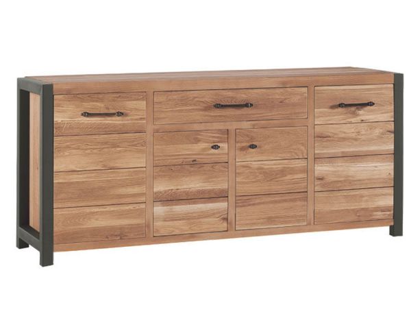 La credenza lunga Catania in rovere oliato e metallo laccato nero vi piacerà sicuramente! Ci piace la sua generosa capacità di contenimento, il suo design e il bel colore naturale del suo legno massiccio. Ci piacciono anche le finiture di pregio, come le gambe e le maniglie rialzate, e l'impressione di robustezza che emana questo capolavoro decorativo senza tempo.