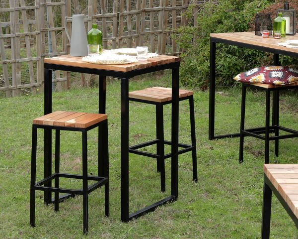 Per soddisfare tutte le vostre esigenze, questo tavolo alto in legno e metallo è disponibile anche in formato rettangolare (L150 x L80 x H 105 cm) con il numero di riferimento 8520. Gli sgabelli abbinati sono disponibili con il codice prodotto #8518.