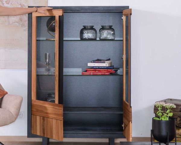 Vetrina contemporanea a 2 ante in vetro e legno massiccio "Flix" di Casita