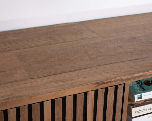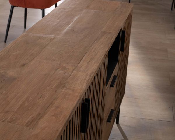 NB: A causa dell'utilizzo di legno riciclato, il piano del mobile può presentare ondulazioni, giunture visibili e piccole crepe che fanno parte del carattere di questa collezione.