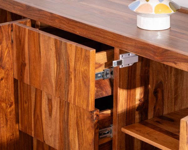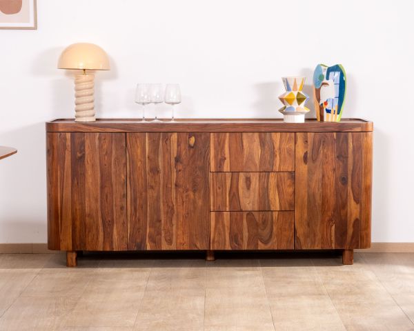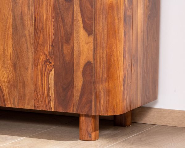 NB: Ogni mobile è unico. Il palissandro è disponibile in un'ampia varietà di tonalità nella gamma del marrone cioccolato, da molto chiaro a molto scuro. Le venature sono ben definite, con strisce scure che aggiungono profondità. Il gioco di colori e venature e i motivi del legno possono essere molto diversi da tavola a tavola, rendendo ogni pezzo unico.