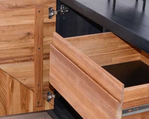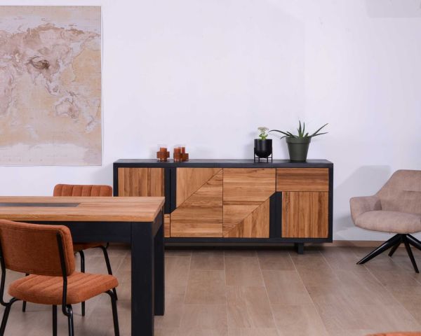 Un'elegante miscela di due legni massicci, la credenza "Flix" a 4 ante e 1 cassetto è disponibile nei colori naturale e nero. I colori si combinano in modo elegante ed efficace per affascinarvi. Il pino massiccio tinto di scuro si integra perfettamente con la tonalità tradizionale del rovere oliato.