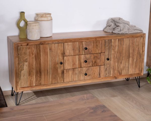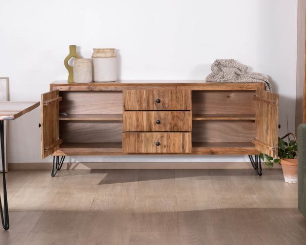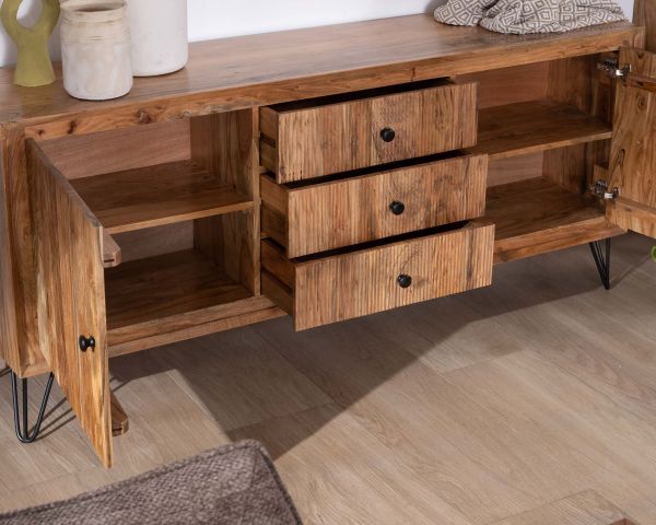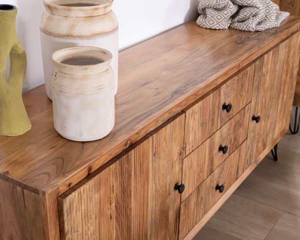Materiali: Acacia massiccia, metallo nero, compensato