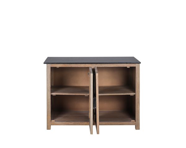 Oltre al suo fascino decorativo, questo mobile ad angolo vi piacerà per la sua praticità. Dotato di uno spesso piano in granito nero, si trasforma in un piano di lavoro robusto e di facile manutenzione. Potrete utilizzarlo per riporre un'ampia gamma di oggetti di uso quotidiano o semplicemente per decorazione.