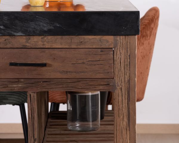 Il legno riciclato mostra i segni del suo passato, quindi ogni mobile ha i suoi segni, avvallamenti o crepe.