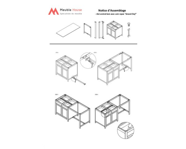 Unità parzialmente assemblata: struttura del lato snack da montare (3 traverse e un telaio) sul piedistallo. Piano in granito da montare