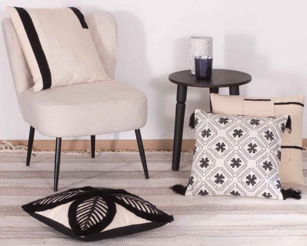 Con le sue dimensioni standard di 45x45 cm, questo cuscino bianco ricamato con motivi geometrici neri ha un fascino antico e starà benissimo sul vostro divano, letto, poltrona o sedia, creando un'atmosfera accogliente e raffinata.