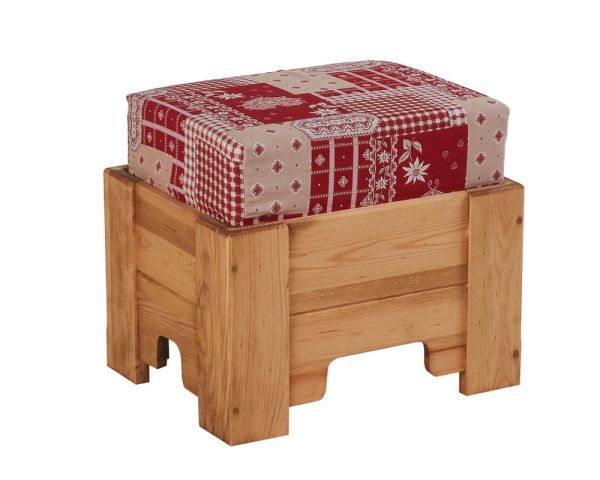 Pouf rustico con rivestimento in pino massiccio e tessuto a scelta "Alaska"
