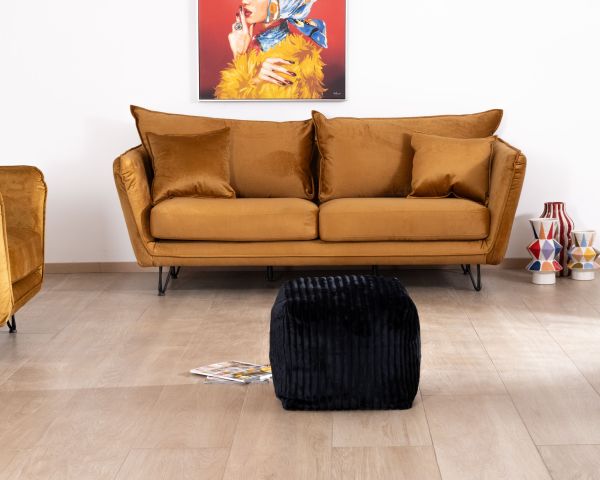 Il vostro nuovo divano in tessuto giallo e metallo nero ha una struttura in pino massiccio e un'imbottitura in schiuma ad alta densità. Il tutto per darvi un sostegno e un comfort di qualità. È buona norma scegliere un divano con seduta imbottita di schiuma con una densità compresa tra 30 e 35 kg/m3 per garantire una buona resistenza del vostro mobile nel corso degli anni. Il vostro nuovo divano "Hasting" vi garantirà comfort e relax!