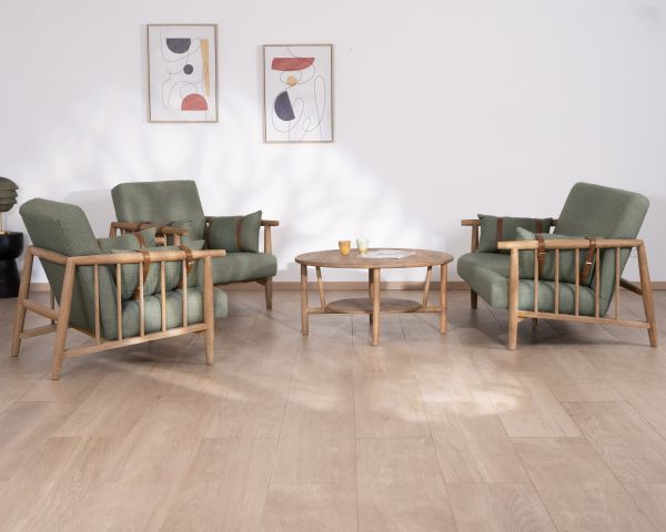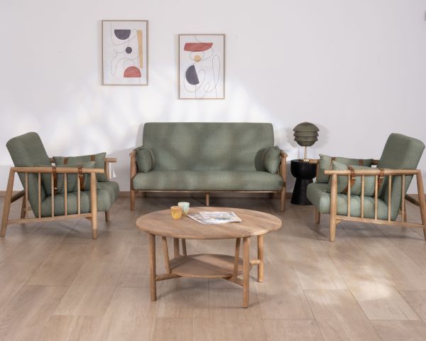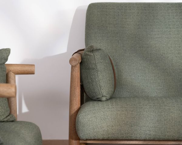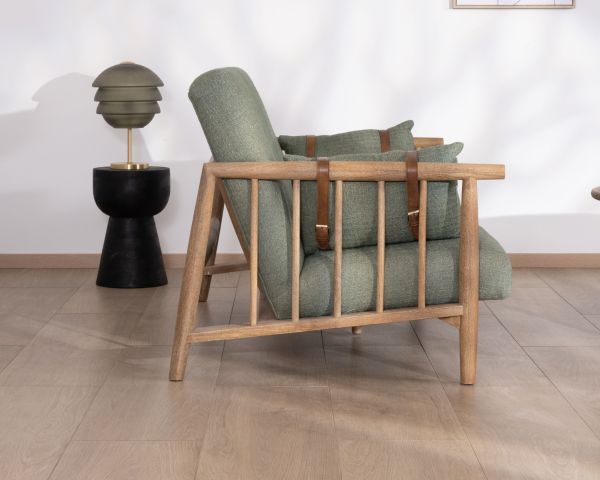 Materiali: tessuto, legno di mango massiccio, imbottitura, pelle